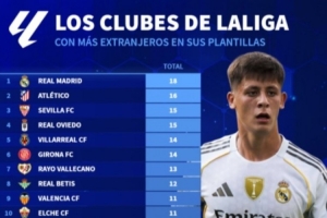 体育资讯9月16日讯 近年来,皇马引进了多名外籍球员,这让球队中外籍球员比例不断上升。根据德国转会市场的统计,皇马阵中目前有18名外籍球员,占比高达72%(18/25),是西甲中外籍球员最多的俱乐部。