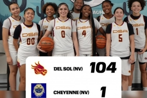体育资讯12月18日讯 在当地时间16日进行的一场内华达州美高女篮比赛中,Del Sol高中以104-1大胜Cheyenne高中。
