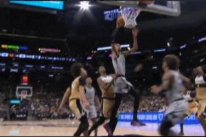 GIF-文班包夹下突破转身扣篮