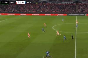 比赛第23分钟,萨姆松体育反击机会,奇尼克接队友左路传中打门被门将扑出,随后他倒地滚到门前,又阴差阳错将队友补射空门的良机挡出,萨姆松体育错失首开记录的机会。