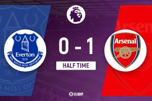 体育资讯12月21日讯 英超第17轮,埃弗顿坐镇主场埃弗顿体育场迎战阿森纳。上半场,奥布莱恩手球送点,约克雷斯点射建功。半场战罢,阿森纳1-0埃弗顿。